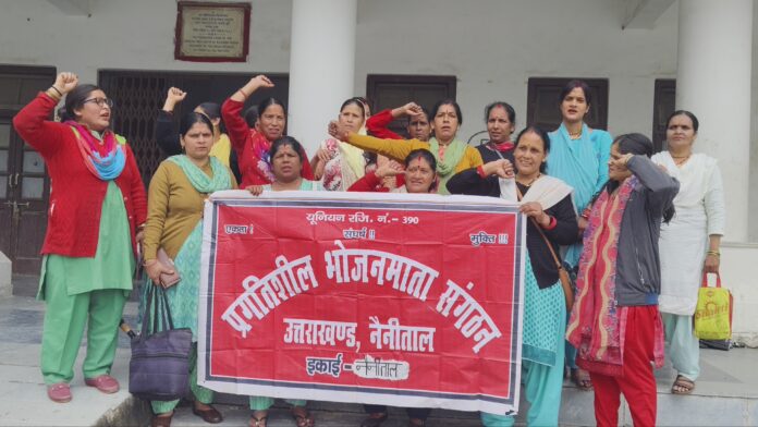नैनीताल: प्रगतिशील भोजनमाता संगठन उत्तराखंड के बैनर तले भोजनमाताओं ने धरना प्रदर्शन कर स्कूलों का विलयीकरण रोकने व उनके मानदेय में बढ़ोतरी की मांग की है। संगठन की ओर से सात सूत्रीय मांगों को लेकर मुख्यमंत्री को ज्ञापन भेजा गया। बुधवार को संगठन ब्लाक अध्यक्ष तुलसी के नेतृत्व में तमाम भोजनमाताए मल्लीताल डीएसए मैदान में एकत्रित हुई। जहां उन्होंने धरना प्रदर्शन कर उनकी मांगों पर विचार नहीं होने पर जमकर विरोध जताया। संगठन ने मुख्यमंत्री को ज्ञापन भेज कहा कि सरकारी स्कूलों में मध्याहन भोजन बनाने के एवज में भोजनमाताओं को प्रतिमाह तीन हजार रुपये मानदेय दिया जा रहा है। जोकि वर्तमान महंगाई को देखते हुए बेहद कम है। भोजनमाताओं को न तो 12 महिने मानदेय मिलता है और न ही कोई अवकाश व भत्तों का लाभ। अब सरकार कम छात्र संख्या वाले स्कूलों का अन्य स्कूलों में विलय कर रही है। जिससे भोजनमाताओं को काम से निकाल बेरोजगार किया जा रहा है। पूर्व में शिक्षा सचिव ने भोजनमाताओं का मानदेय बढ़ाकर पांच हजार करने का प्रस्ताव केंद्र को भेजा था, जिस पर अब तक कोई प्रगति नहीं हुई है। उन्होंने प्रतिमाह पांच हजार मानदेय करने, 12 माह का मानदेय देने, भोजनमाताओं को स्थाई करने, छात्रसंख्या कम होने पर स्कूलों का अन्य स्कूल में विलय न किया जाए, ईएसआई, पीएफ, पेंशन व प्रसूति अवकाश देने, कार्य से निकाली गई भोजनमाताओं को फिर नियुक्ति देने की मांग की है। प्रदर्शन करने वालों में हंसी, राधा, हेमा, पुष्पा, सरिता, लक्ष्मी, अनीता, सलोनी समेत अन्य शामिल थे।