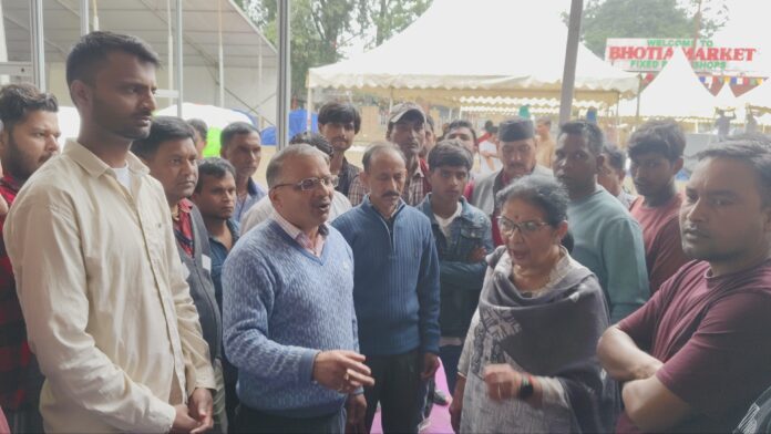 नैनीताल।नैनीताल में मां नंदा देवी महोत्सव में दुकानों के अधिक रेट होने की बात पर पालिकाध्यक्ष डॉ सरस्वती खेतवाल ,सभासद अंकित चंद्रा, राकेश पावर, रमेश प्रसाद निरीक्षण के लिए मौके पर पहुंचे।इस दौरान उन्होंने कहा कि नियमों के तहत की दुकानें दी जाए। मौके पर मौजूद कई दुकानदारों ने आरोप लगाए कि उन्हें 30000 से अतिरिक्त दामों पर दुकान दी गई है।